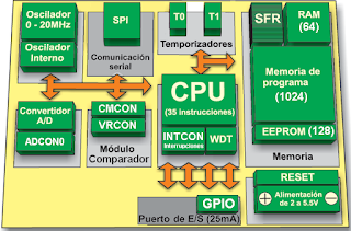además, uno o más circuitos internos de temporización (TIMER) con los cuales se temporizan y/o
